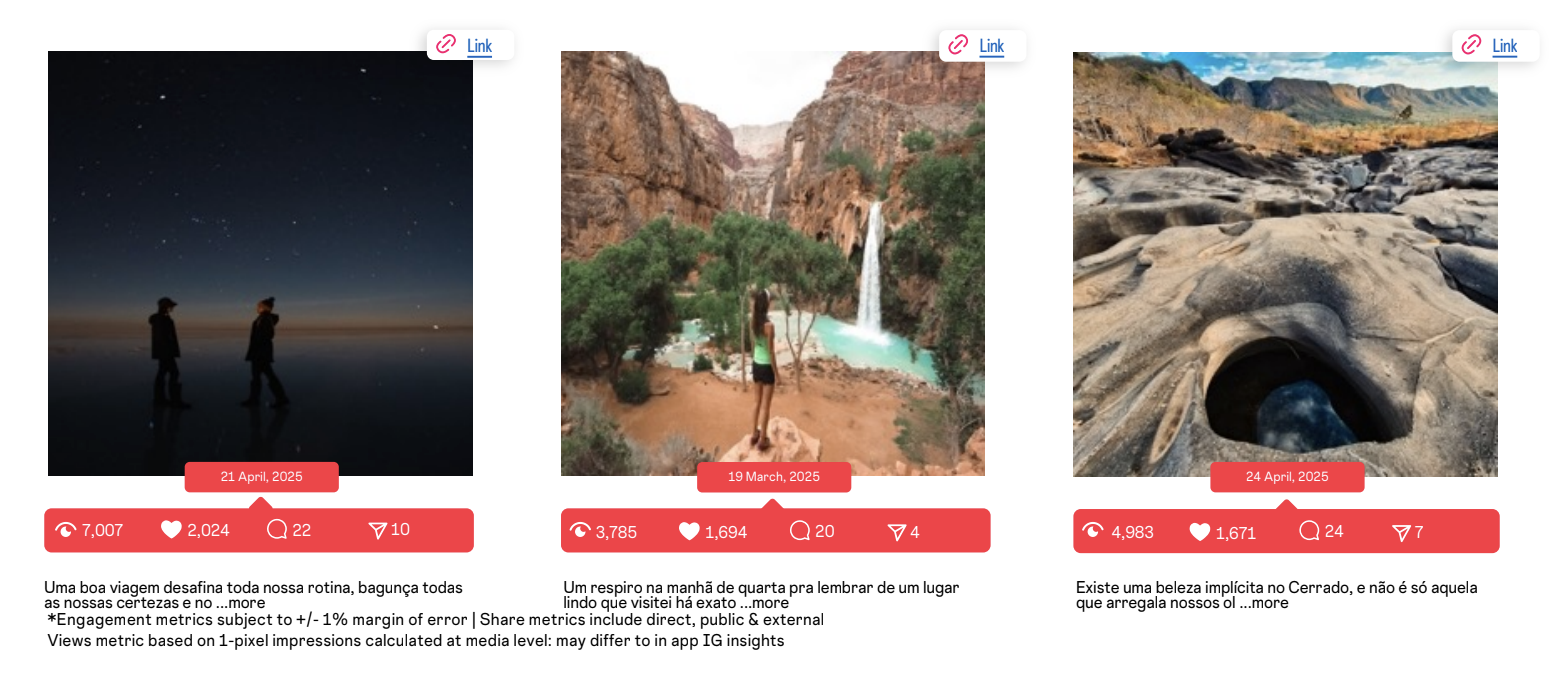 O perfil da jornalista e produtora Flávia Vitorino reúne uma audiência altamente engajada e afinada com temas como natureza, propósito e estilo de vida contemporâneo. São 126 mil seguidores, com crescimento consistente e base orgânica sólida, composta majoritariamente por mulheres (64%) entre 25 e 44 anos, localizadas principalmente no Brasil e em grandes centros urbanos.